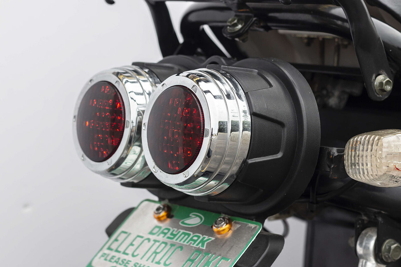 El scooter cuenta con una batería de litio de 20 Ah para un alcance de 60 km. La batería se puede cargar en 20 minutos.